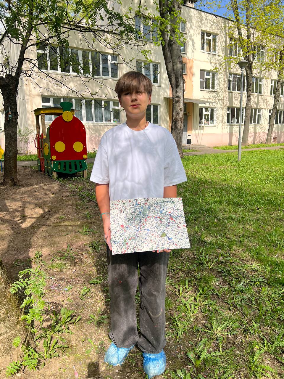 На этот раз территория пришкольного парка превратилась в настоящую художественную мастерскую! Ученики 5-го и 6-го классов под руководством талантливого педагога Елизаветы Константиновны Ефимовой, владеющей множеством уникальных техник обучения изобразительному искусству, отправились в увлекательное путешествие в мир абстрактного экспрессионизма.